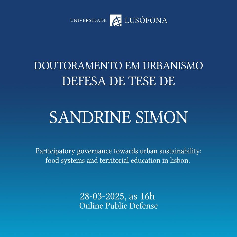 Ph.D. thesis defense on "Participatory governance towards urban sustainability: food systems & territorial education in Lisbon" by Sandrine Simon.